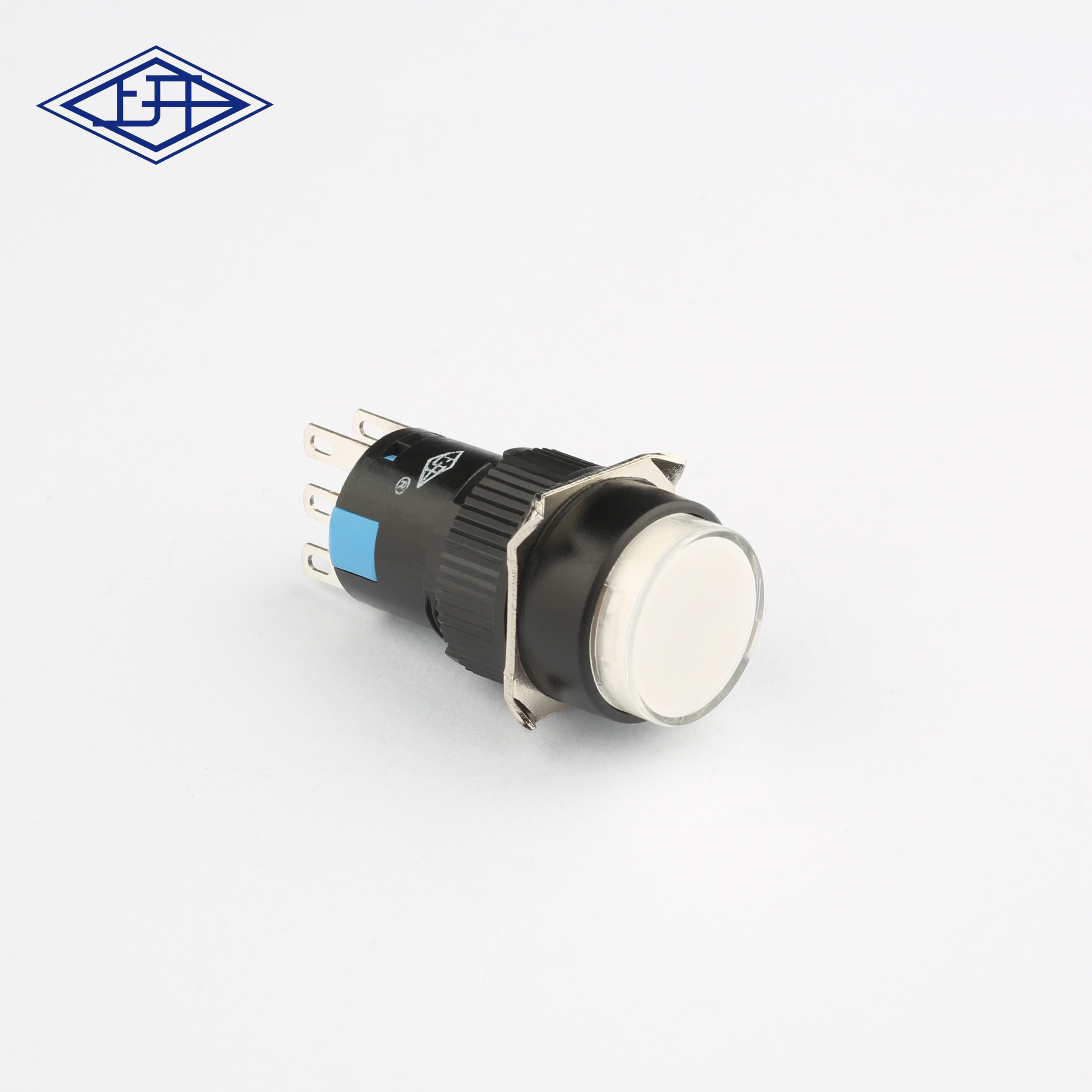 上海永星电子推出的AD16双极自锁带灯长方形按钮开关,支持双触点控制,适用于需要同时切换两个独立电路的场景。